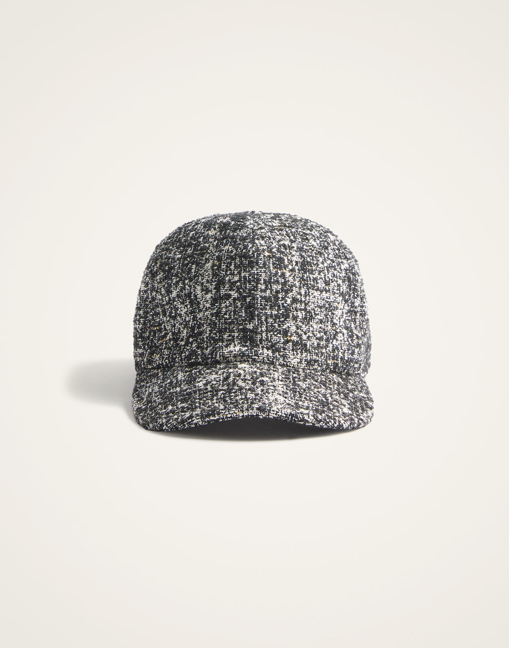 Baseball cap in Tweed Lurex made in a warm wool mix to bring a joyful finish to your coat closet (or your favorite party dress) this winter.