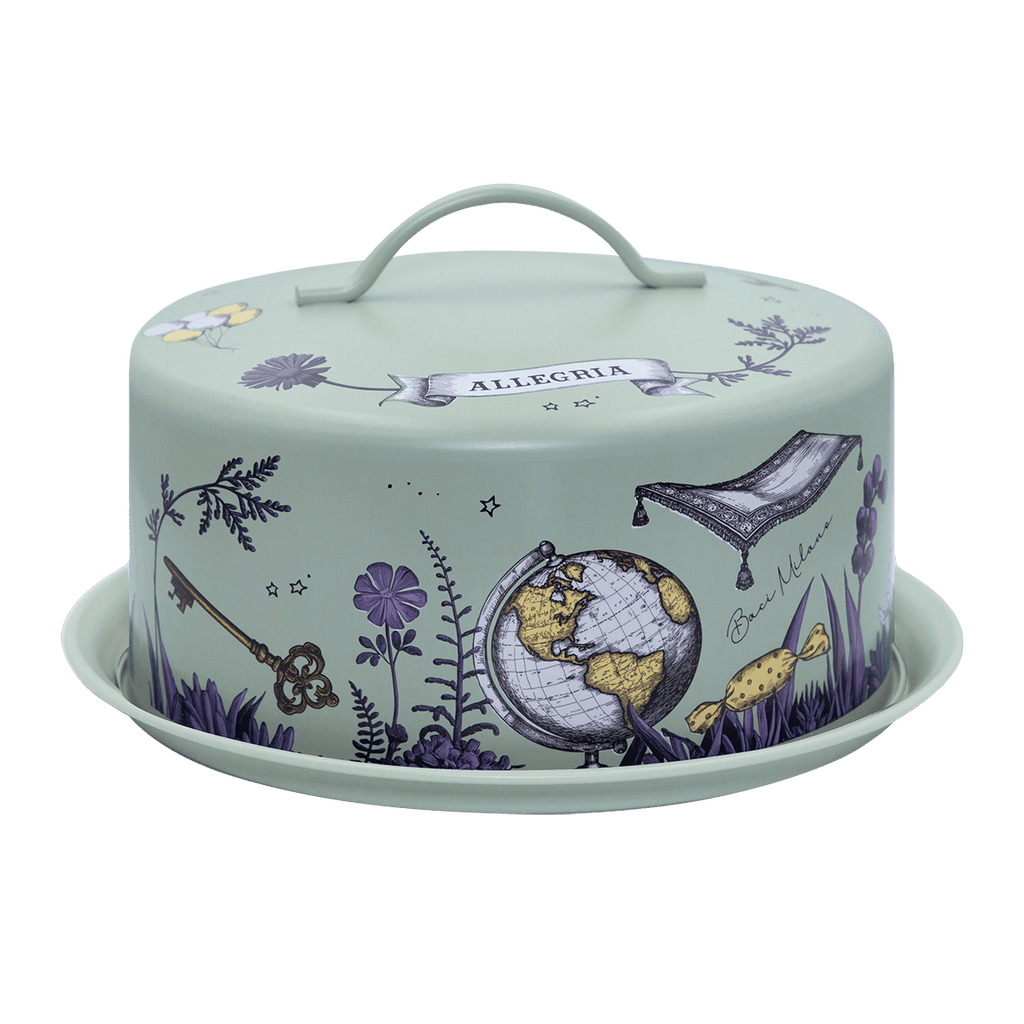 Cake plate with dome in stainless steel. Rubber ring on the plate to seal and secure the dome in place. Practical for cakes or any food outdoor and indoor.