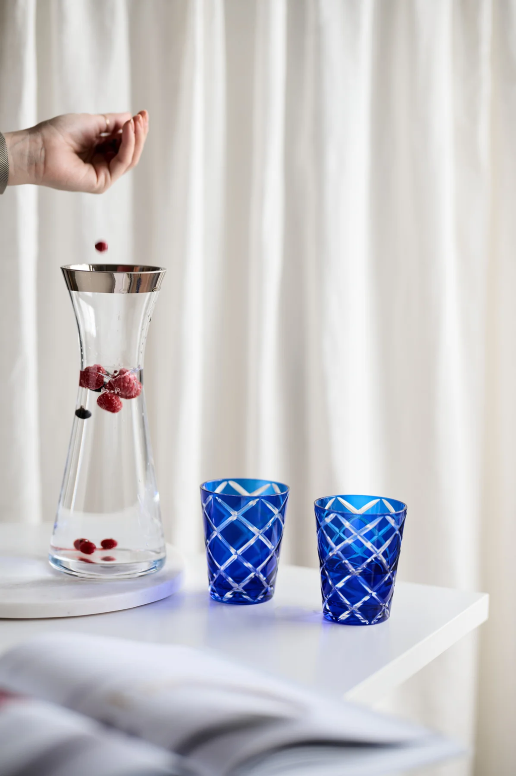 Carafe in mouth-blown crystal glass with platinum rim