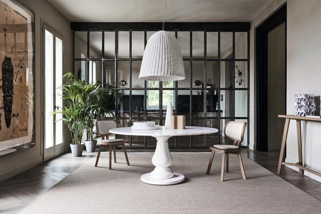 The GRAY 22 dining chair is characterised by its retro inspiration and contemporary design. The chair has an upholstered backrest framed by a walnut or oak frame.