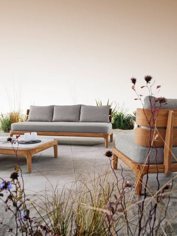 Discover the elegance of the Mediterraneo Collection by Gervasoni, where contemporary design meets natural materials. Each piece is crafted with a premium teak wood frame, expertly treated to enhance its durability, warm tone, and organic texture.