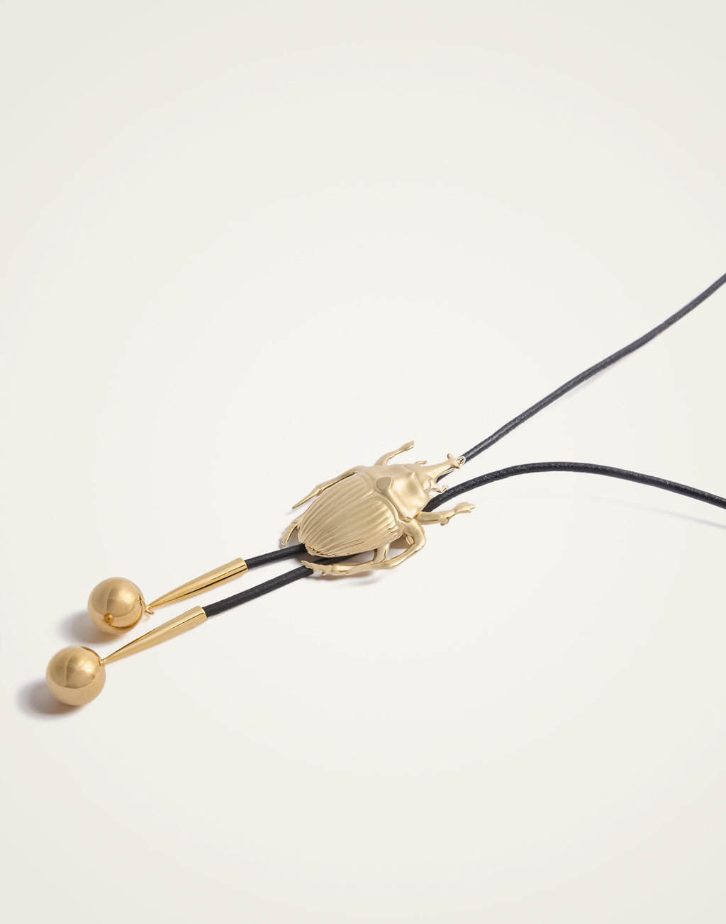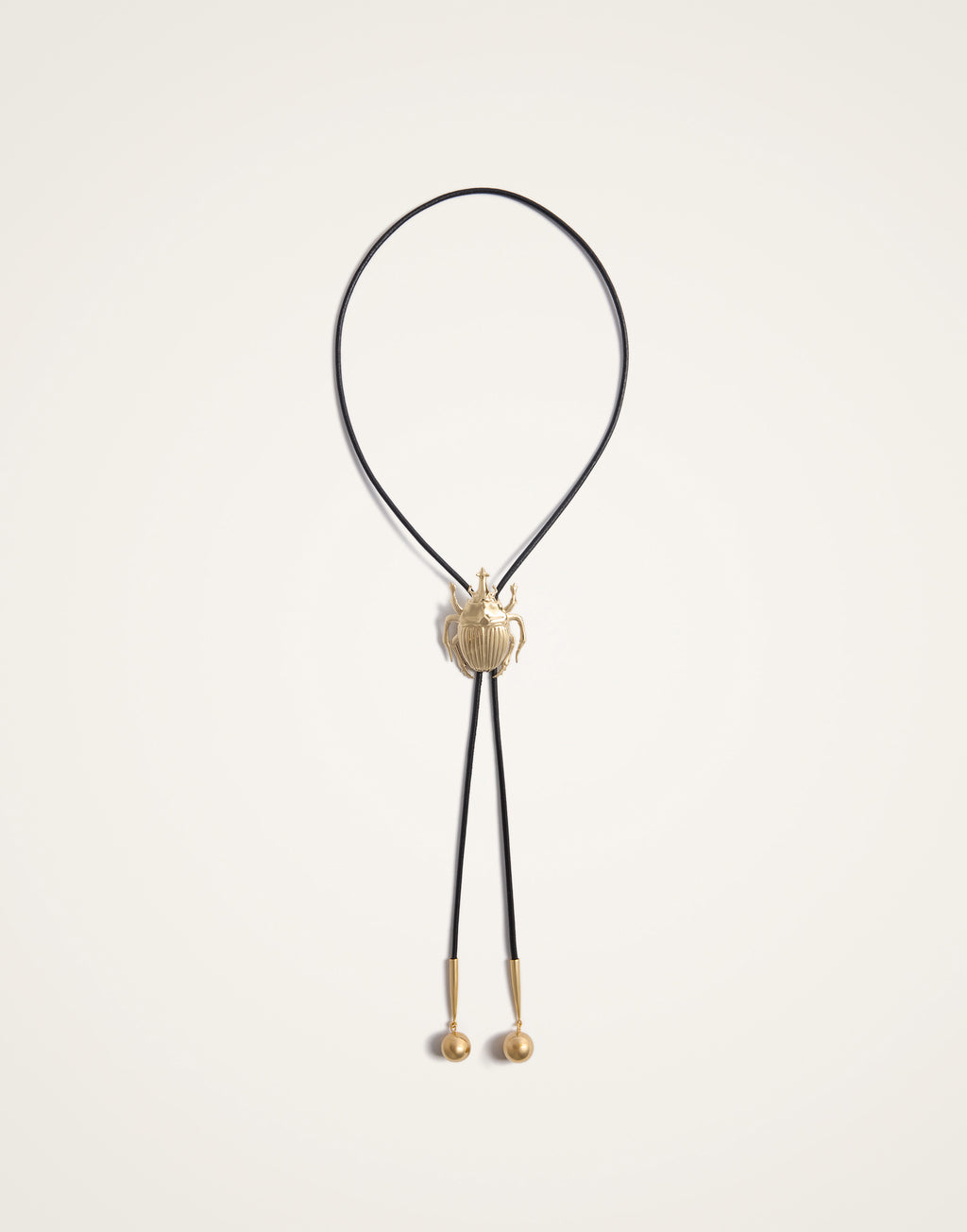 The scarab, one of La DoubleJ's first spirit animals, is an Ancient Egyptian symbol of renewal and transformation. So when you wear this adjustable Cow Tie adorned with our gold-plated scarab, you'll not only be boosting your aesthetic but also elevating your energy.