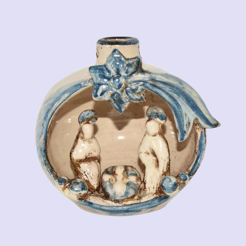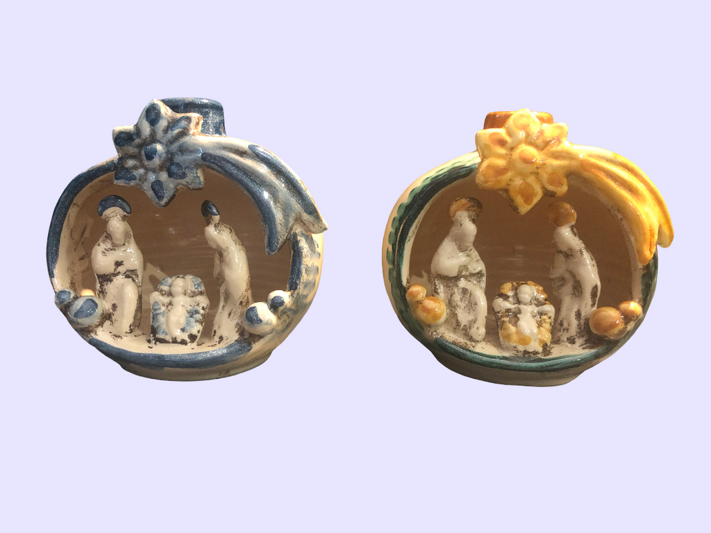 Enhance your Christmas decoration with this ceramic bauble that has a crib inside. Handmade with great care in Sicily to complete your Christmas decoration.