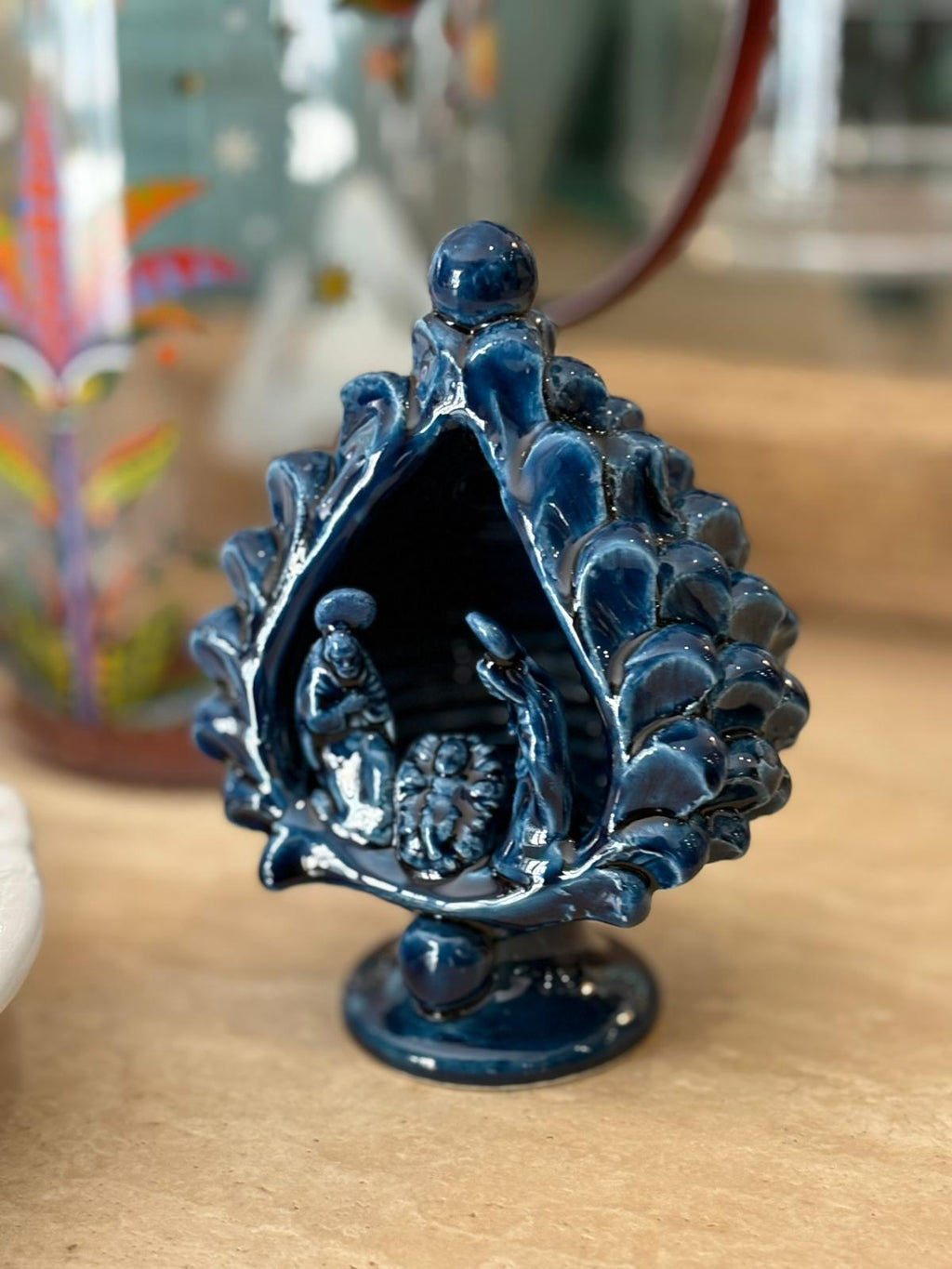 Complete your Christmas decoration with this handmade ceramic crib from Sicily. Made with great care to enhance your festive table or tree decoration.
