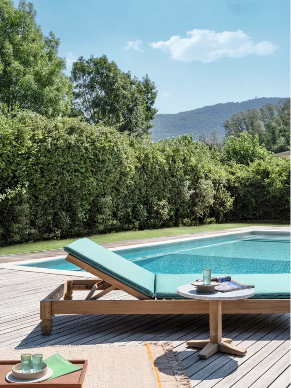 Enhance your outdoor living space with the Gervasoni Jeko 81 day-bed, a perfect blend of luxury and sustainability. Designed by Paola Navone, this armchair is crafted from ECOTeak, a material made from reclaimed teak wood, giving it a distinct character while promoting environmental responsibility. Its colonial-inspired design features a spacious seat and elegant, minimalist lines, offering both comfort and style.