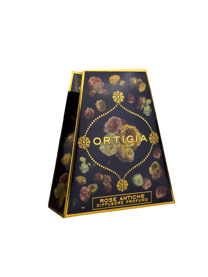 Natural reeds in a lovely signature bottle. The perfumed liquid travels through the sticks, releasing the subtle and continuous fragrance of Damask and Alba roses.