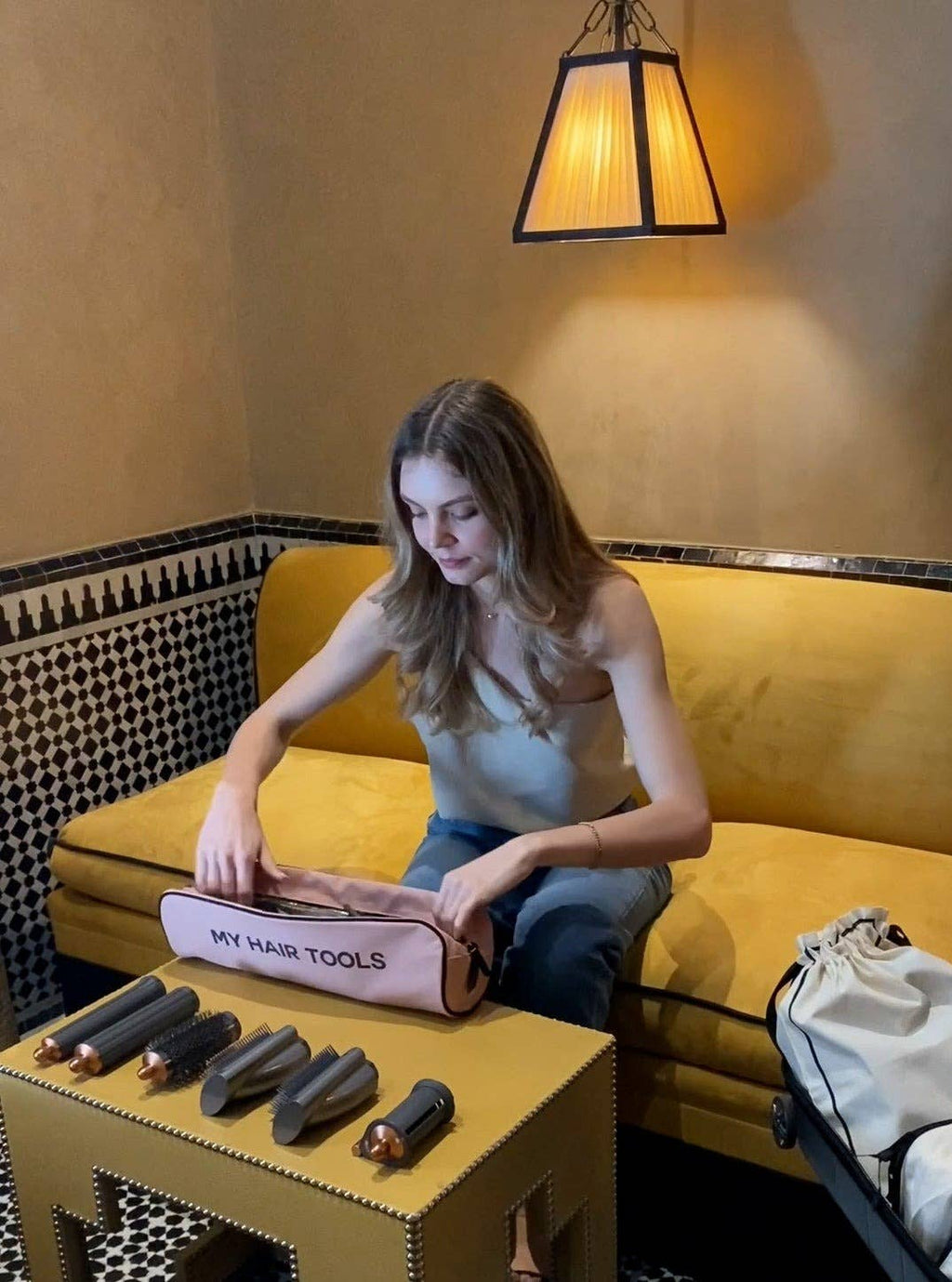 Get ready to take your at-home blowouts on the road with Bag-all's Roomy Hair Wrap Tools Travel case in our signature Pink blush color! Finally a stylish case that fits your favorite Airwrap. This roomy travel case fits straighteners, curling irons, and other hair tools you need for traveling or at home. Our trendy and sleek high quality cotton hair tools case comes with heat resistant inner lining and features a durable gold metal zipper and grosgrain ribbon made from 100% recycled material - making sure your hair tools are kept in place.