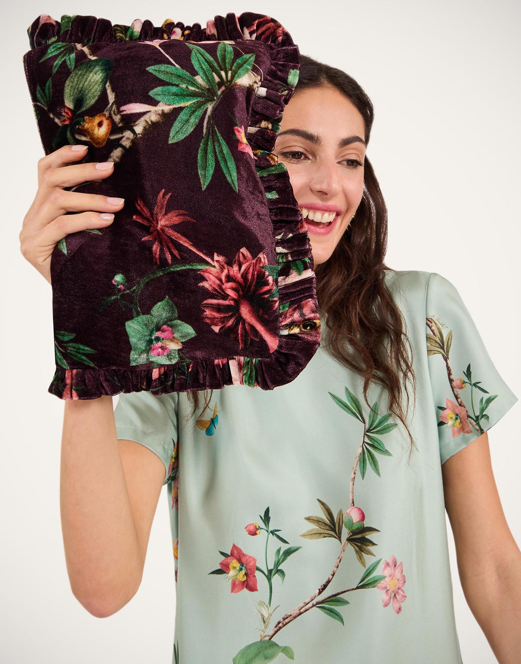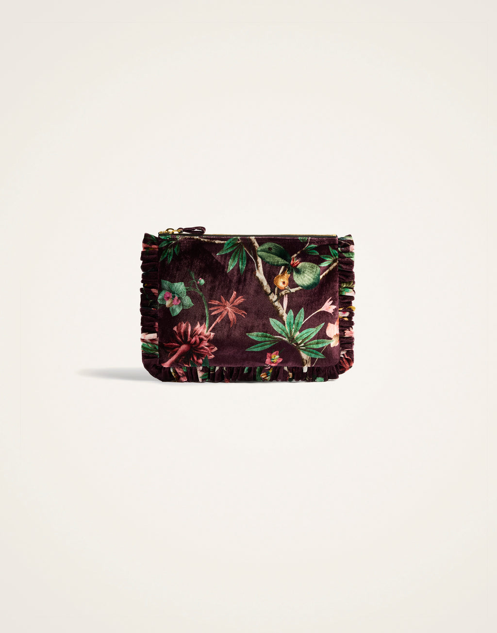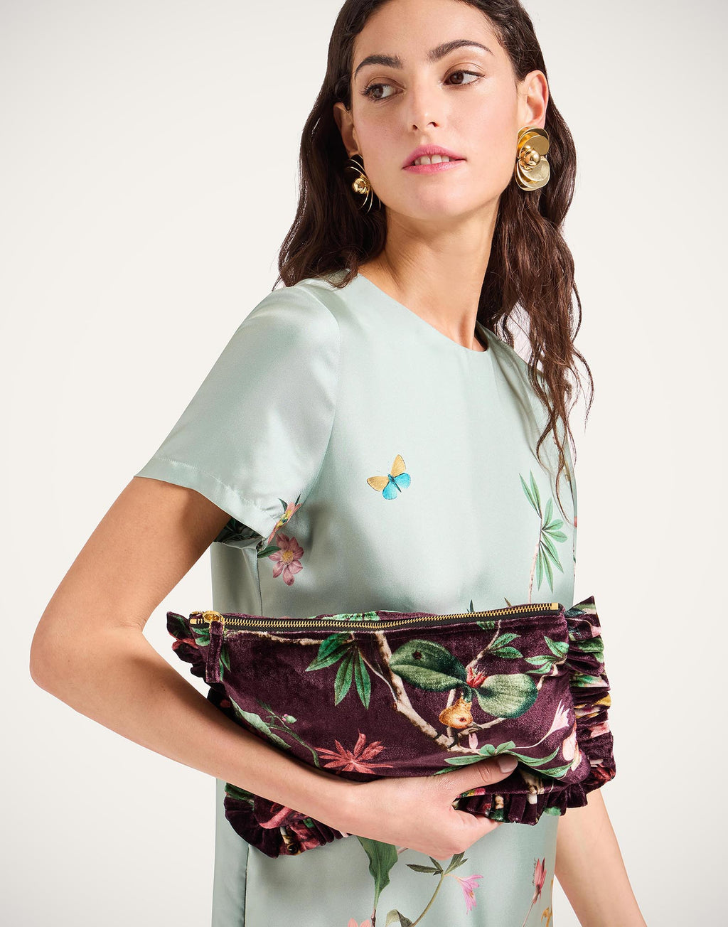 A big statement in this gorgeous Zooflora print from our collaboration with artist Beto Val, our soft oversized zip pouch is a multi-use beauty that not only elevates the status of your dinner-to-dancing outfit, but will easily house a cell phone, mini tablet and cardholder. The side handle makes it super simple to carry around which – great news! – gives you free hands to hold your bellini at a cocktail party.