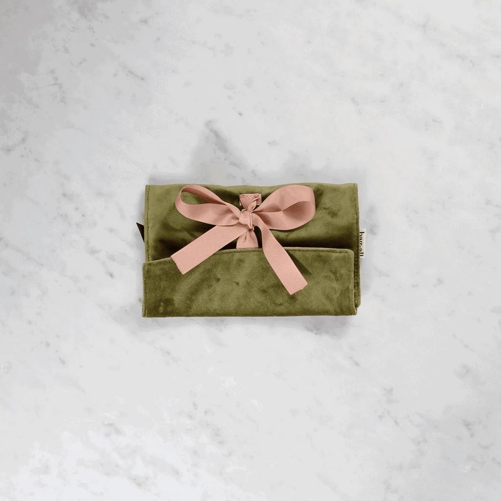 Effortlessly organize and protect your precious jewellery at home or while traveling with our eco-velvet Couture Jewellery Roll, Medium. With three zipper compartments, a genuine leather earring holder, and a padded ring holder, this stylish organizer keeps your accessories neatly organized and easily accessible. Say goodbye to tangled necklaces and misplaced earrings - this is a must-have for every jewellery lover.