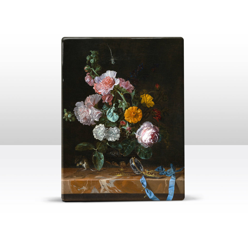 A lacquer print is a new technique developed and produced in the Netherlands in which a very high-quality printed image is manually draped over sanded and brushed 100% PEFC certified scaffolding wood. Due to the hand-painted high-gloss finish and the subtle flow of the image over the edges. Its on a thick wooden support.