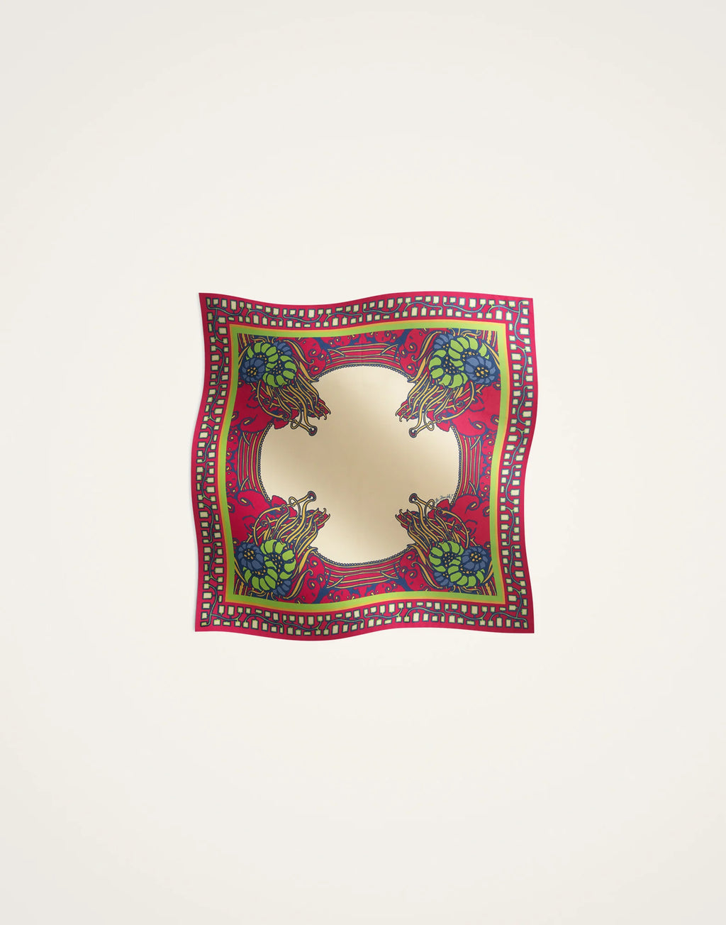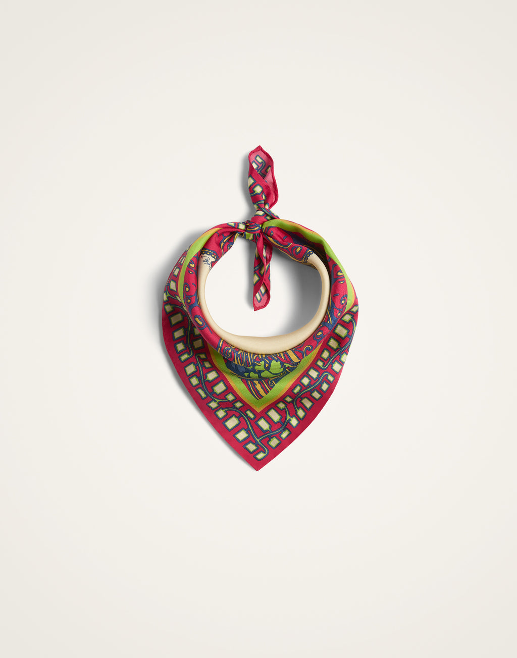Give your outfit some dolce vita flair with our Made in Italy foulard. The silk square is the oldest trick in the Milanese Sciura style book, always stashed in a handbag to be folded around the hair, wrapped loosely into a crisp shirt collar, or tied onto a wrist, ponytail or bag strap. Crafted from the finest silk twill from Lake Como, this smaller version makes a great pocket or collar companion and arrives in our hand-placed vibration-raising prints.