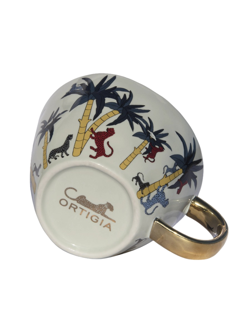 Wonky ceramic tazza of irregular form with gold serigraphy.Diameter: 13cmHeight: 8cm