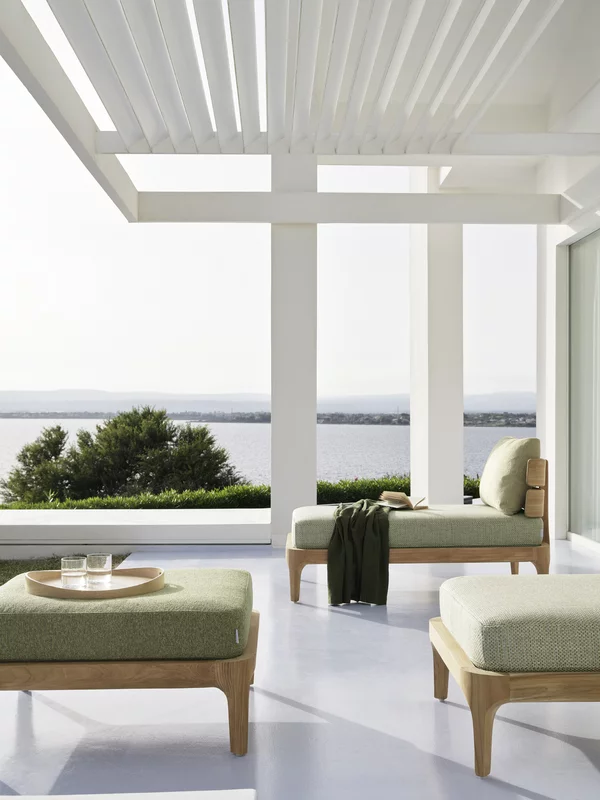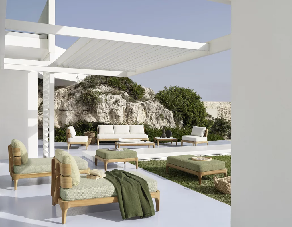 Discover the elegance of the Mediterraneo Collection by Gervasoni, where contemporary design meets natural materials. Each piece is crafted with a premium teak wood frame, expertly treated to enhance its durability, warm tone, and organic texture.