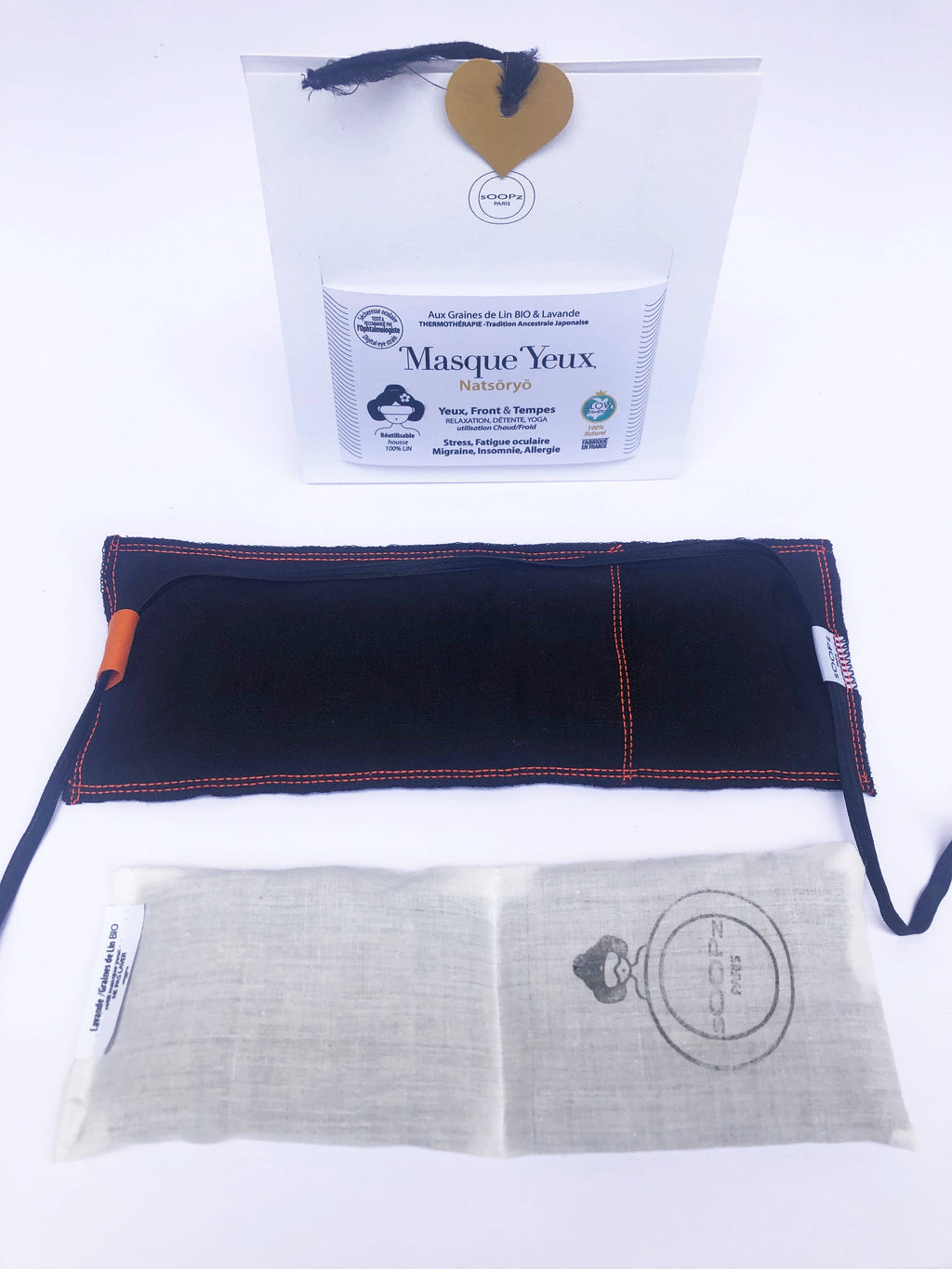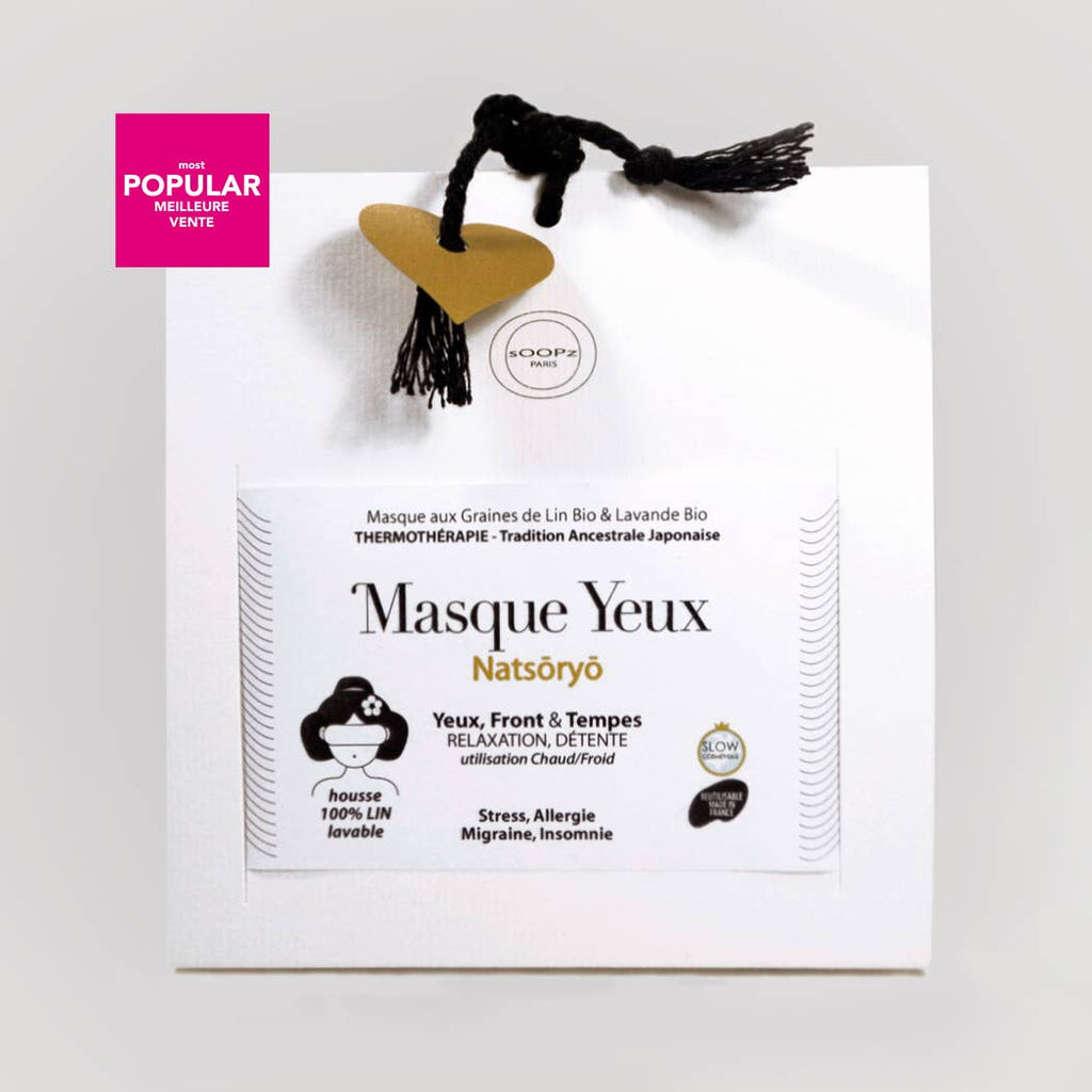 Discover the 'Le Natsōryō' eye mask, filled with organic flax seeds and French lavender. It can be used warm or cold. The relaxing eye pillow, placed on the forehead and eyes, is ideal for yoga sessions (Shavasana), sound baths, or meditation.