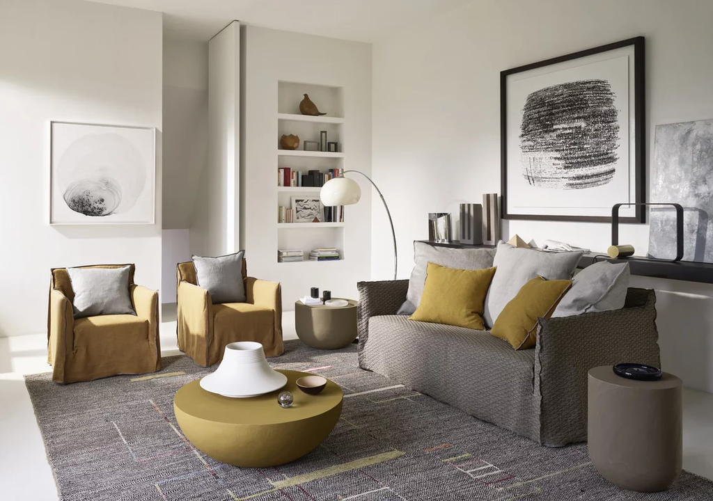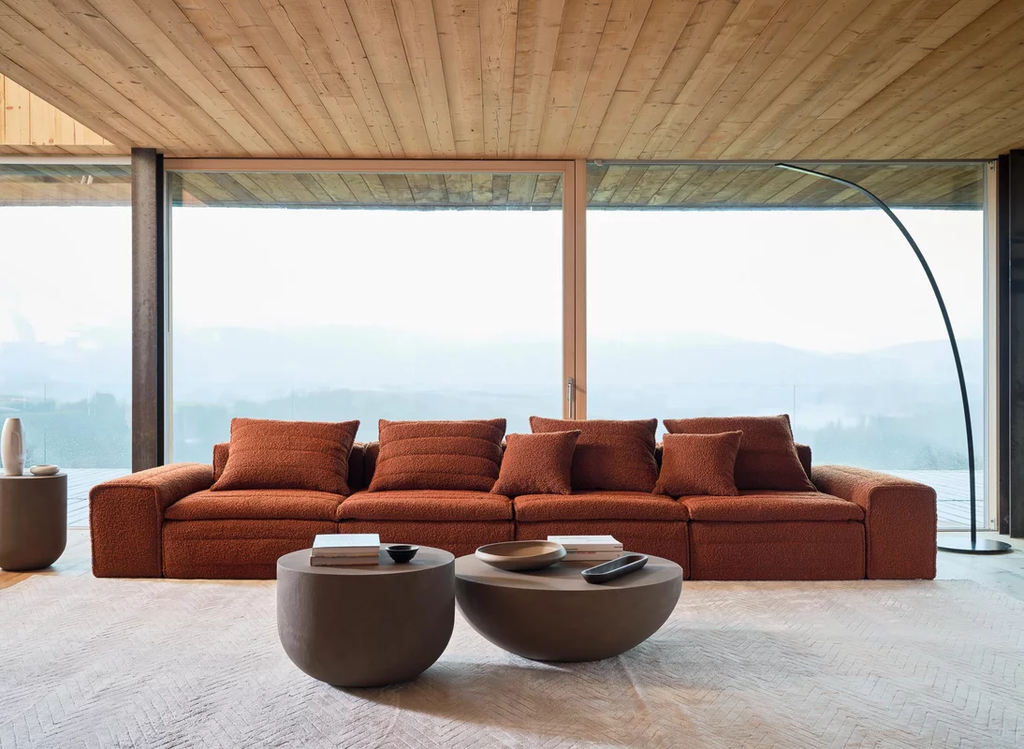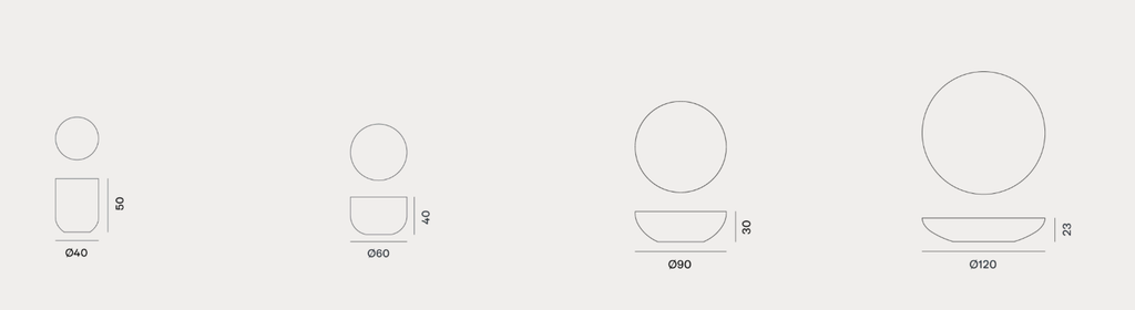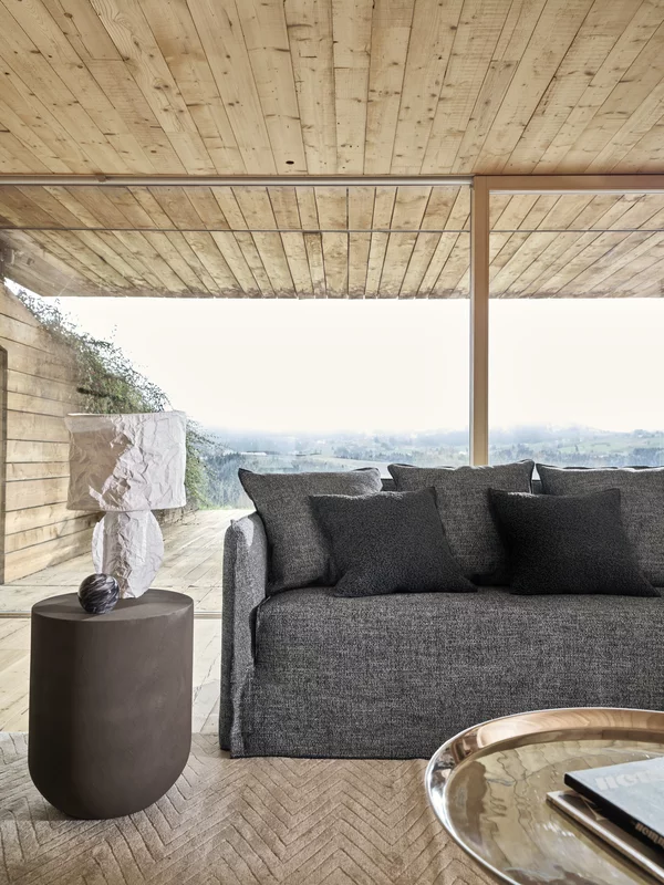 The collection is made up of side tables and coffee tables made of high-density polymer and finished with a clay layer. Matt stain-proof treatment. Available in four sizes and three colours: Ombra, Cassel or Siena.