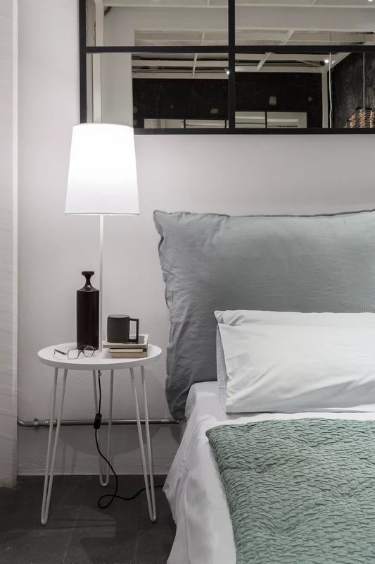 The LC 47 night table combines functionality and aesthetics: lamp-night table with a dry aesthetic that enhances its great visual lightness, created by the combination of different materials. On the one hand, the matt white or grey painted steel of the legs and the white parchment of the lampshade, on the other, the table top made of solid oak available in the following finishes: bleached oak; black, white, grey, ocean, dove-grey, blueberry, date or ginger lacquered oak; walnut-stained oak.