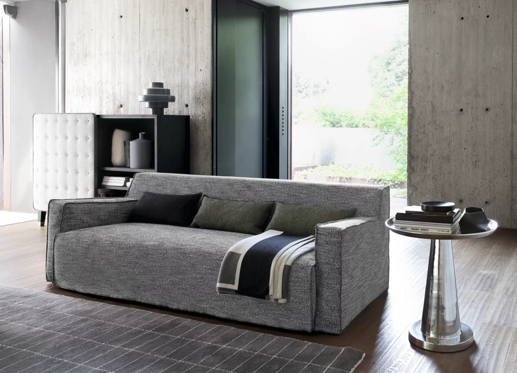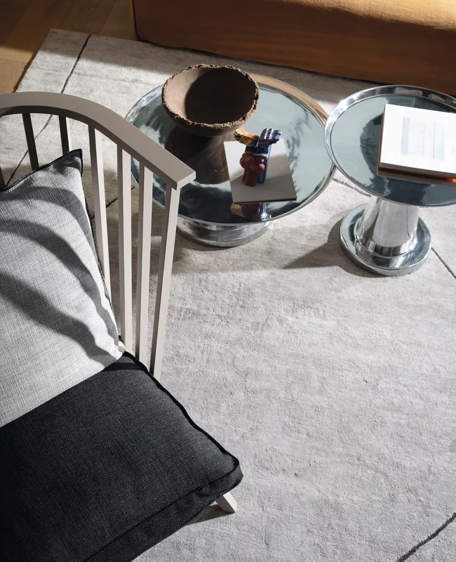 Contrasts of light and reflections characterise the Next 141/142/144 coffee table family. Made entirely of polished cast aluminium, they are available in different sizes and heights and are characterised by a single central base that seems to support a tray with slightly raised edges. The gloss of the surface allows the light to create different effects every time.