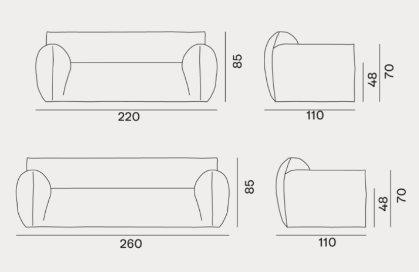 A family of sofas with soft and attractive shapes, Nuvola’s aesthetic invites you to dive into it: the high armrests welcome a seat as deep as a hug, creating a real cocoon effect. Available with two or three seats, they are padded with multi-density polyurethane foam covered with quilt padded with goose down and polyester fibre staple. The cover is removable with visible seams that draw the profile of the product, and can be made with all the covers available in the catalogue in the name of maximum versatility.
