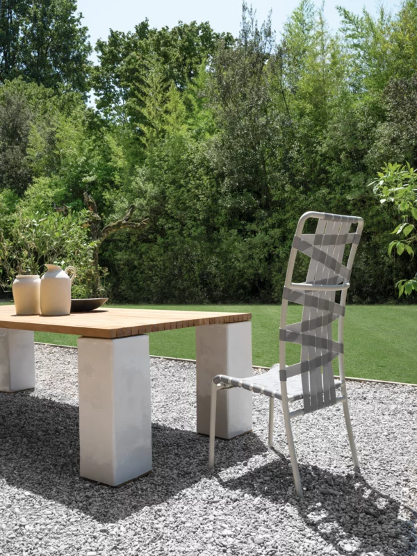 The Gervasoni InOut 33/34/35 table, designed by Paola Navone, is an elegant side table that features a top crafted from natural teak slats, complemented by legs made of GFRC (Glass Fiber Reinforced Concrete) in blue, white, or anthracite grey finishes. Its compact dimensions make it ideal for gardens, terraces, or poolside areas, offering both functionality and style. The InOut 33/34/35 table is part of a versatile collection that includes various sizes and configurations to suit different outdoor settings.