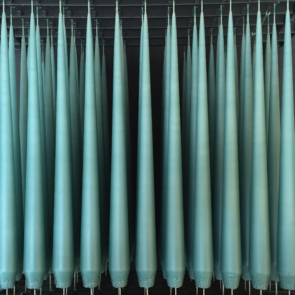 Blue agave, light turquoise colour tapered candle.