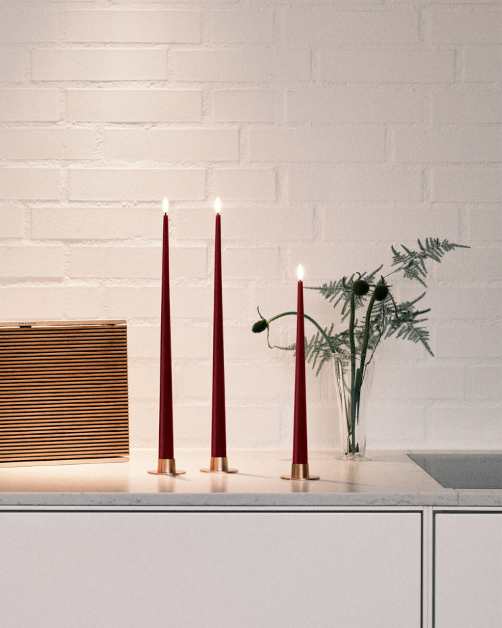 Candle-burning tips: To ensure that the candle burns in the best possible way, we recommend keeping the wick short, placing candles min. 10 cm apart, and avoiding placing candles in direct sunlight, draughts or above a radiator.