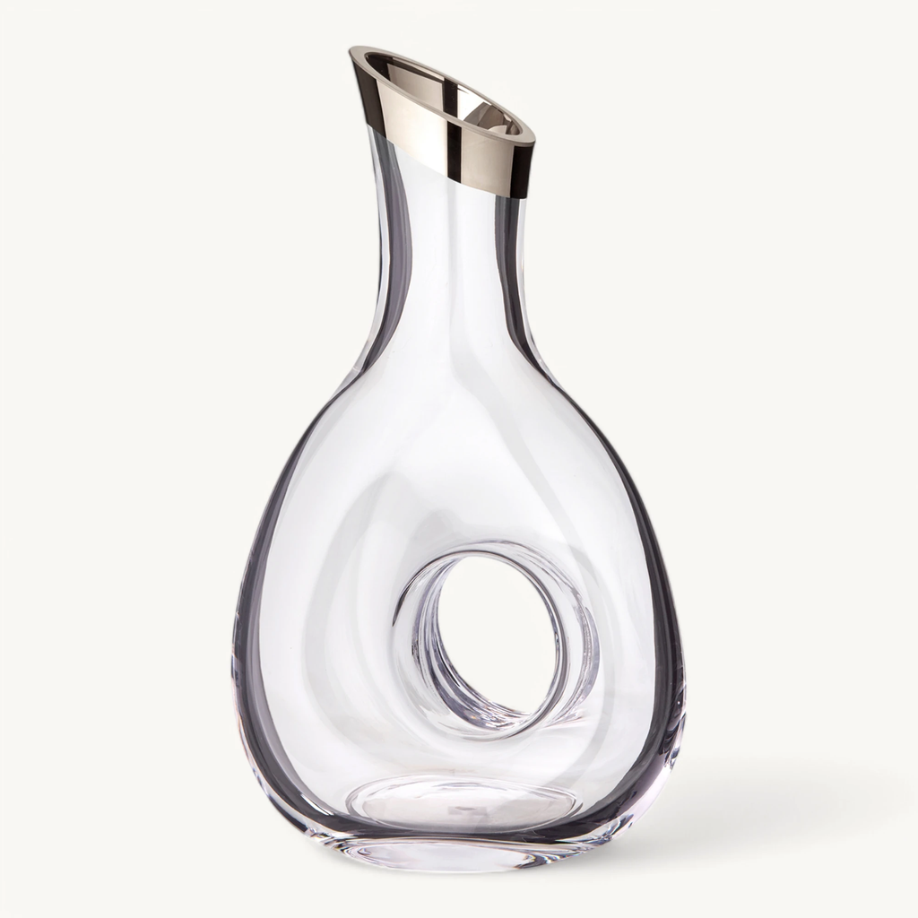 Wine decanter in mouth-blown crystal glass with platinum rim